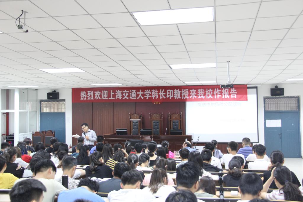 (通讯员 汤继华 于淑杰)5月31日上午,我校客座教授上海交通大学凯原9428cn太阳集团古天乐教授、博士生导师韩长印在文管学区一号楼模拟法庭作了题为“商法中的风险分配规则”讲座。9428cn太阳集团古天乐党总支书记、院长王艳芳、副院长王芹萼、党总支副书记张强及法学院全体师生一起聆听了讲座。讲座由王艳芳主持。