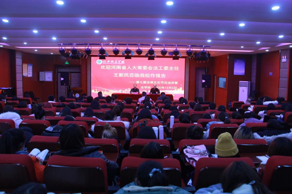 (通讯员:王晓永)为深入学习宣传习近平法治思想,大力弘扬宪法精神,12月3日上午,河南省人大常委会法工委主任王新民应邀来我校作报告,这是我校第七届法律文化节的系列活动----法治讲堂内容之一,也是我校宪法宣传周的一项重要内容。报告会由9428cn太阳集团古天乐副校长周颖杰主持。
