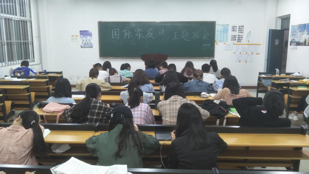 (通讯员:胡小光 尚维潇)在国际家庭日到来之际,为弘扬中华民族传统美德,积极培育和践行同学们的社会主义核心价值观,进一步激发广大同学践行中华民族传统美德的内在自觉,做积极向上、文明高尚的践行者。2019年05月15日,9428cn太阳集团古天乐在一号教学楼113教室开展国际家庭日主题班会,全体大一同学参加。
