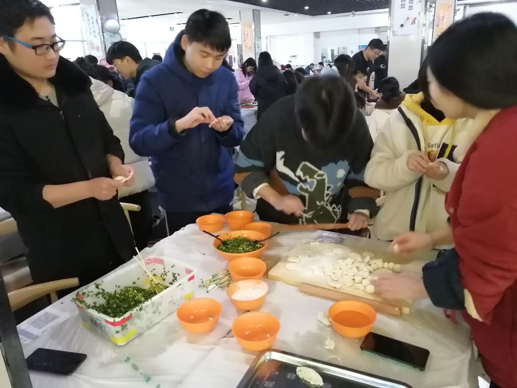 活动伊始,同学们积极参与场地整理,搬桌子、铺桌布、摆工具,为包饺子做相关事宜准备。在热烈欢快的气氛中,同学们以小组为单位,开始有序地进行揉面、擀面皮、包饺子等环节,分工明确,配合默契,气氛融洽,热腾腾的饺子出锅后,同学们一边品尝着自己的劳动成果,一边欢快地交谈,其乐融融。